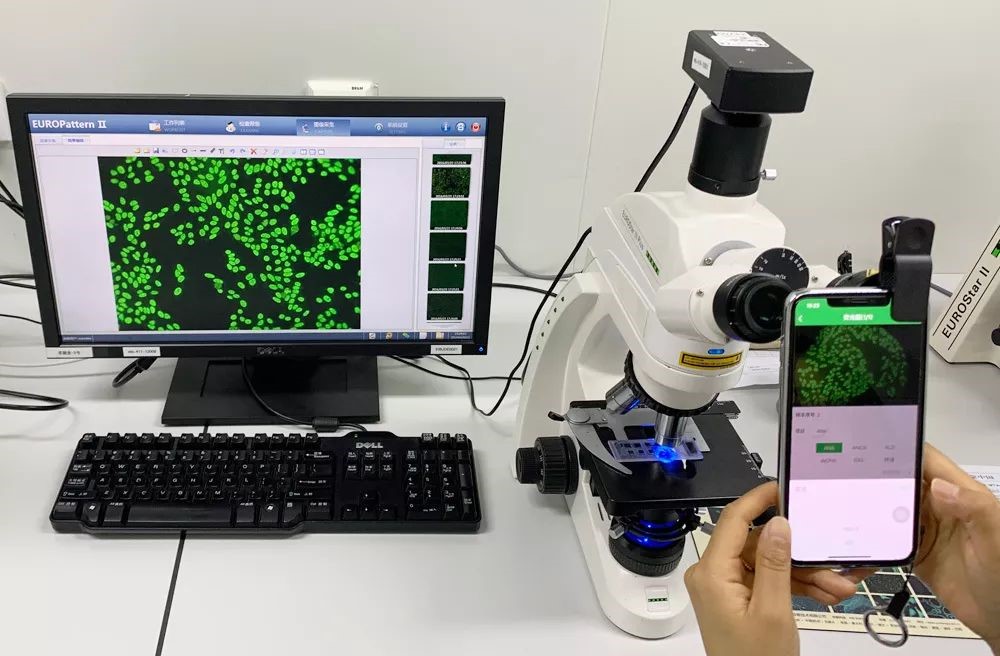 歐蒙間接免疫熒光檢測(cè)平臺(tái)作為神經(jīng)系統(tǒng)自身免疫性疾病重要的檢測(cè)技術(shù)平臺(tái)被納入該教學(xué)培訓(xùn)體系,助力相關(guān)腦病的診斷以及專業(yè)人才建設(shè)。歐蒙間接免疫熒光檢測(cè)平臺(tái)是歐蒙五大方法學(xué)平臺(tái)之一,本次培訓(xùn)活動(dòng)主要應(yīng)用到間接免疫熒光顯微鏡(EUROStar Ⅲ Plus)和成像系統(tǒng)(EUROPattern II)、以及遠(yuǎn)程熒光輔助判讀服務(wù)(小未讀片):