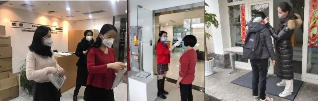 為保障員工身體健康,行政團(tuán)隊(duì)為必須到現(xiàn)場工作的小伙伴發(fā)放口罩,在這“一罩難求”的大環(huán)境下感受到公司是用心守護(hù)每一位歐蒙人。行政的姑娘們?cè)缬诖蠹业纳习鄷r(shí)間,提前對(duì)辦公區(qū)進(jìn)行消毒處理,使每個(gè)辦公區(qū)配備消毒洗手液、板藍(lán)根沖劑、體溫槍,做好員工安全保障工作。