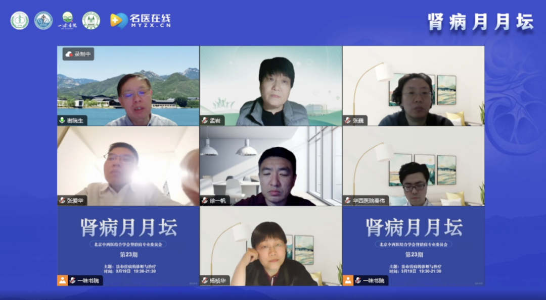 謝教授代表北京中西醫結合學會腎臟病專業委員會、北京中西醫結合腎臟疑難病會診中心以及一味書院對各位專家、各位同仁及各位朋友參加第23期“腎病月月壇”表示熱烈的歡迎和衷心的感謝,同時感謝名醫在線的轉播。