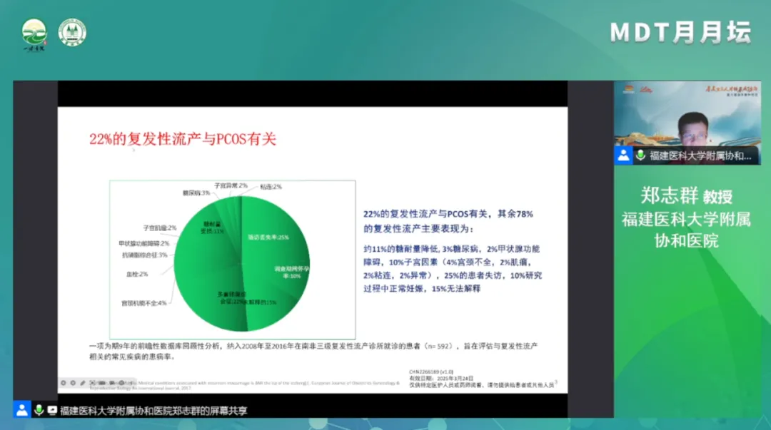 鄭教授詳細(xì)的講述了PCOS不孕癥患者先兆流產(chǎn)風(fēng)險和流產(chǎn)率增加、妊娠并發(fā)癥明顯增加,并且造成子代內(nèi)分泌和心血管功能障礙,以及代謝異常等不良影響;PCOS不孕癥患者妊娠風(fēng)險的主要原因是胰島素抵抗、肥胖、高雄激素血癥、黃體功能不全以及高血栓; 在備孕前調(diào)整周期,生活方式干預(yù)的同時使用地屈孕酮保證月經(jīng)高期及保護子宮內(nèi)膜;在妊娠階段使用地屈孕酮防治流產(chǎn)、改善妊娠結(jié)局。她還特別提出對HCY、高血栓、不孕癥等免疫指標(biāo)的關(guān)注和檢測,給出從臨床到機制,再到檢驗的一系列細(xì)致分享。