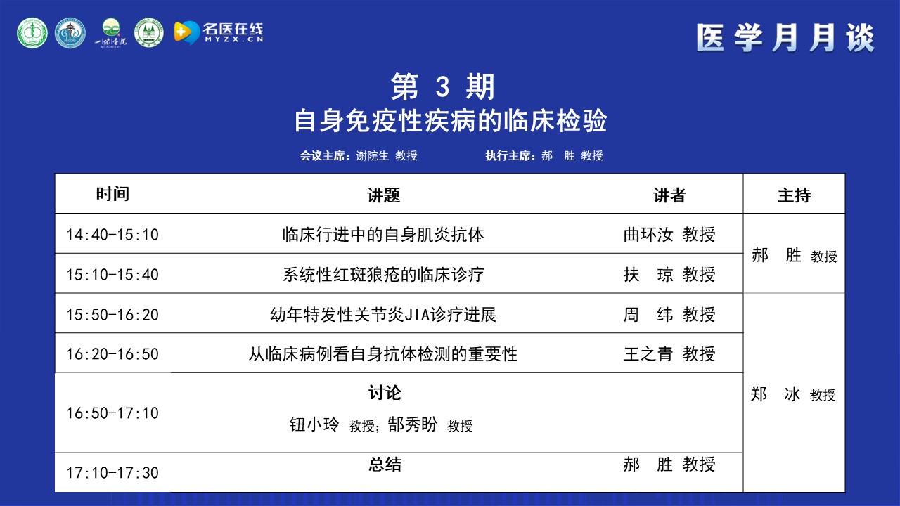 郝教授指出,本期主題關注于自身免疫性疾病的臨床檢驗,邀請到該領域臨床及檢驗知名的專家。郝教授特別感謝與會專家百忙之中共商診療策略,期待通過本次研討會能為自身免疫性疾病的臨床檢驗引領方向,為提升區域診療水平作出貢獻。