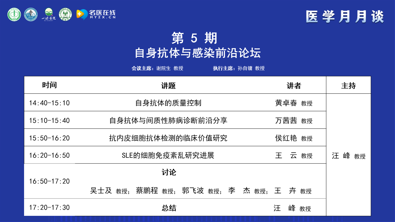 本次論壇特邀多位專(zhuān)家,就自身抗體、感染免疫及風(fēng)濕免疫等領(lǐng)域分享臨床與科研進(jìn)展。期待與會(huì)同仁暢所欲言、碰撞思想,共同開(kāi)拓這一充滿機(jī)遇的學(xué)術(shù)疆域,為患者健康事業(yè)貢獻(xiàn)力量。預(yù)祝論壇圓滿成功!