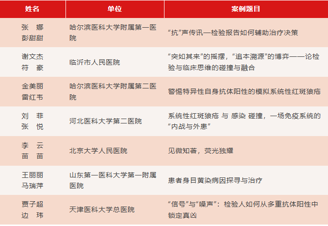 隨著北區(qū)活動的結束,本屆自身免疫實驗室診斷案例展演區(qū)域階段已全部完成。感謝廣大同仁對本活動的支持與厚愛。各區(qū)域脫穎而出的優(yōu)秀案例將于今年10月會師全國展示舞臺互鑒交流,敬請關注!